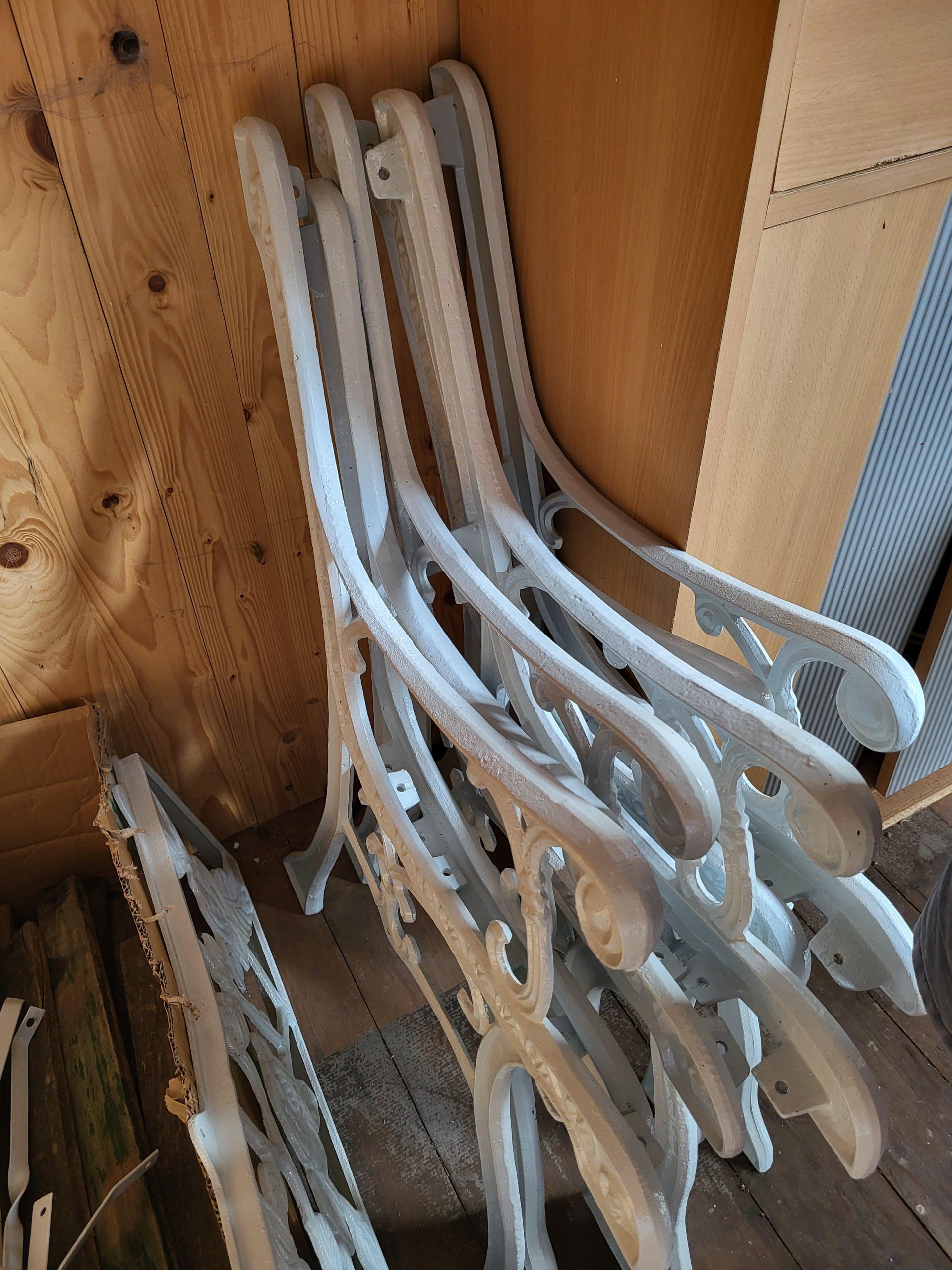 Drei wunderbare Bänke mit Gussgestell bzw. Lehne