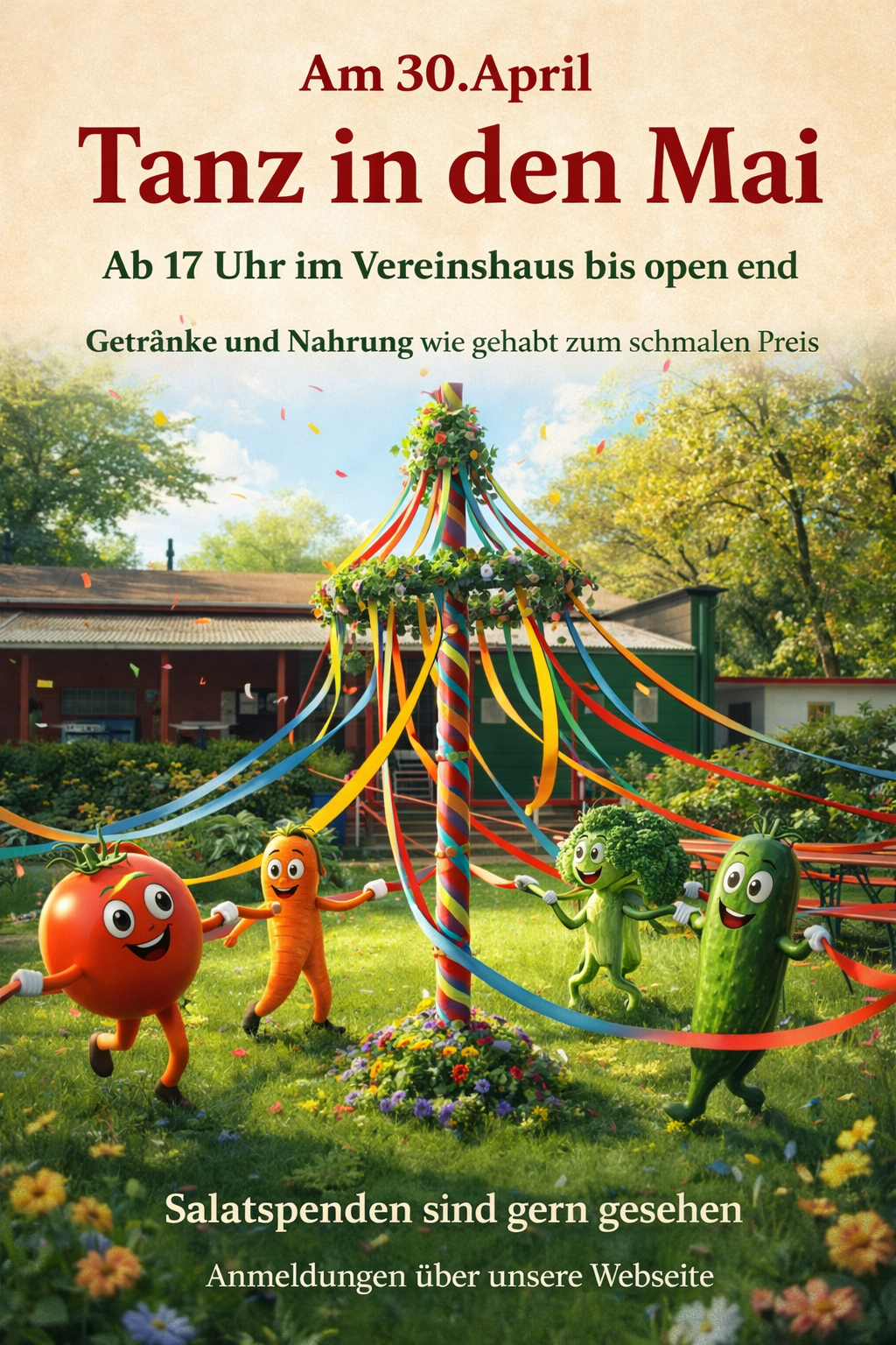 Tanz in den Maidieses Jahr mit Maibaum!Los geht es am 30.04.2026 um 17:00 UhrParzellennummer *Name *Anzahl Erwachsene *Anzahl Kinder *Ich bringe mitAnmeldenBereits mitgebrachte Dinge1xSalat, Dip1×Kartoffelauflauf1×Luftschlangen1×