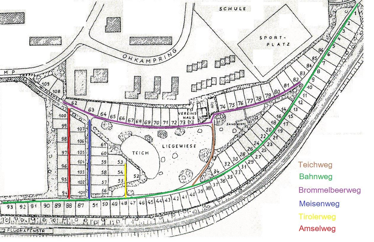 Zur besseren Orientierung stellen wir neuen Mitgliedern und Gästen einen Lageplan unserer Gartenanlage zur Verfügung. Die Übersicht zeigt die Anordnung der Parzellen, Wege, Gemeinschaftsflächen sowie das Vereinshaus.